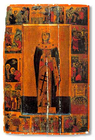 Santa Caterina, secondo la tradizione vergine e martire ad Alessandria, ricolma di acuto ingegno, sapienza e forza d’animo. Il suo corpo è oggetto di pia venerazione nel monastero sul monte Sinai.