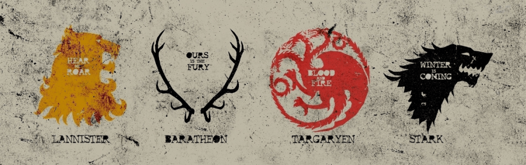 Le casate principali sono: casa Stark di Grande Inverno, una delle grandi del Continente Occidentale e la più importante del Nord; casa Lannister di Castel Granito, una delle Grandi case dei Sette Regni e la casa principale delle Terre dell’Ovest; Casa Targaryen, una delle più antiche e, come abbiamo visto, a questa casata è legato il trono di spade; casa Baratheon e casa Tyrell. A queste si aggiungono altre casate minori, ma comunque importanti nell’economia del romanzo, come Casa Martell e Casa Greyjoy. Ogni casata ha uno stemma e un motto e il libro presenta un’appendice con una dettagliata e molto utile descrizione delle stesse che il lettore imparerà presto a conoscere perché ogni capitolo narra l’unica storia dal punto di vista di uno dei protagonisti.