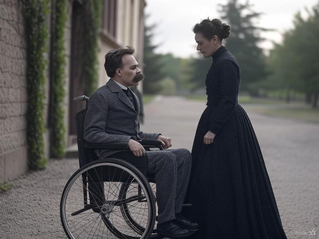 Elisabeth chiamò un infermiere e con il suo aiuto vestirono Nietzsche. Presero una sedia a rotelle e uscirono. Dopo settimane di ricovero, era la prima volta che Friedrich chiedeva di uscire.
