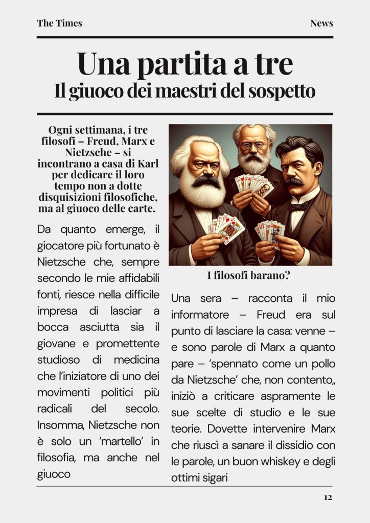 «Marx, Freud e Nietzsche si incontravano a casa di Marx a Londra per giocare a carte, ma…».